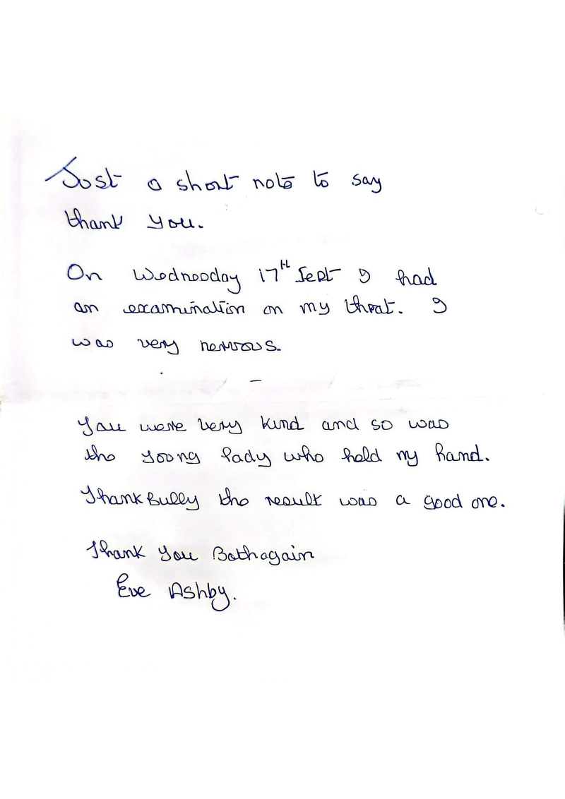 A Handwritten Note from a Patient
